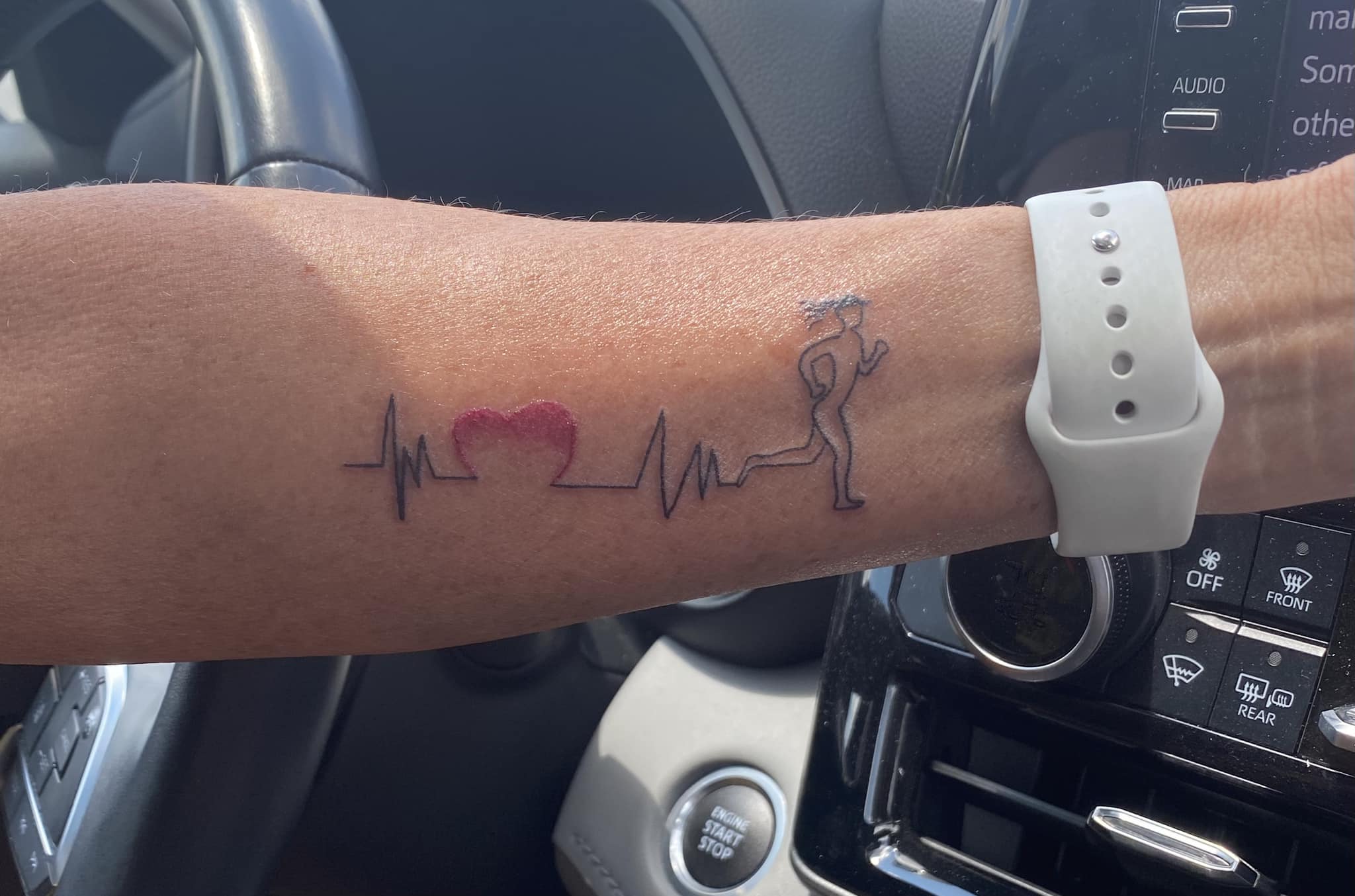 I got this tattoo last year in honor of my dad. I began running to keep my heart healthy in his memory.